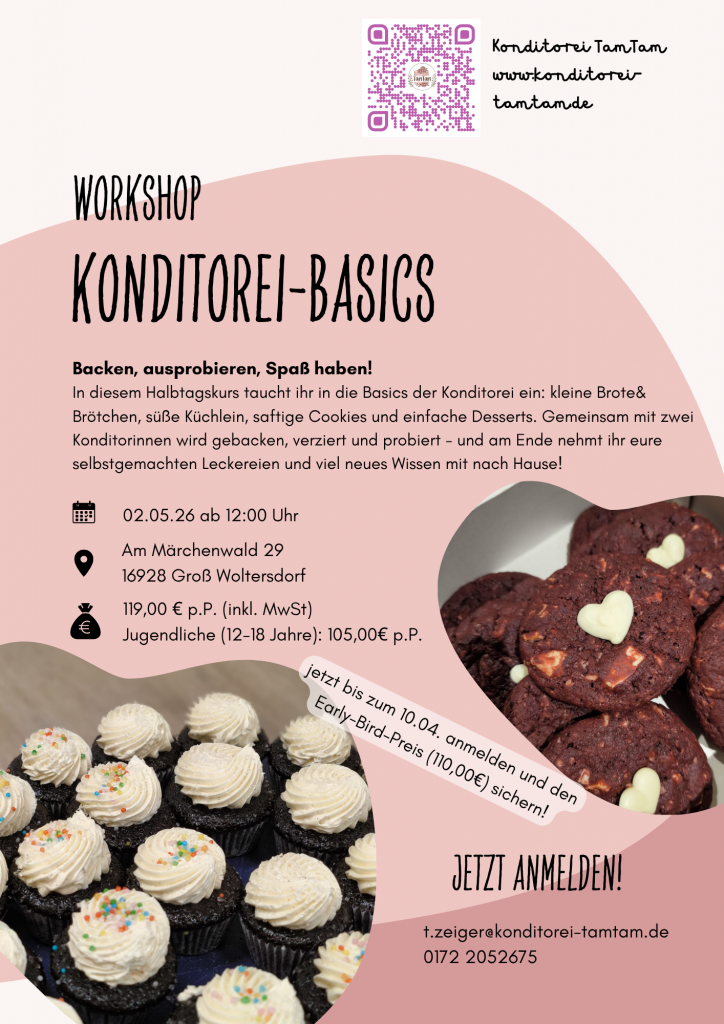 Zusammen mit zwei Konditorinnen lernt ihr hilfreiche Tipps und Tricks und geht am Ende mit euren selbstgemachten Leckereien und viel neuem Wissen nach Hause!
